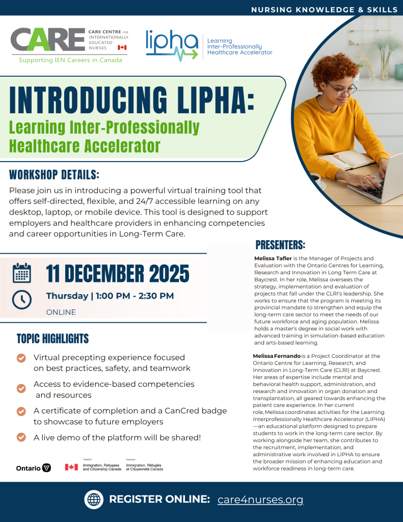 Login Register Sign Out CARE Centre for Internationally Educated Nurses presents: This workshop will provide an opportunity to learn about conducting head to toe assessments and a chance to practice hands-on in an interactive and supportive learning environment. Presented by CARE Centre Social Media Facebook X-twitter Youtube Linkedin Register for Session MORE NURSING EVENTS AND […]