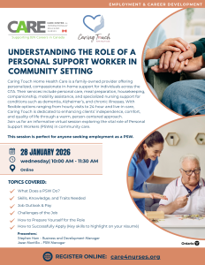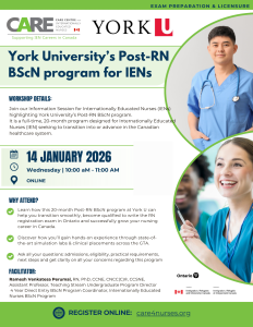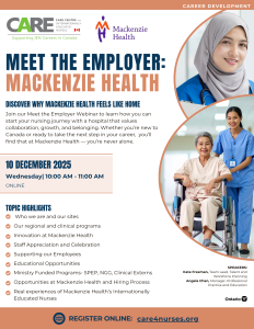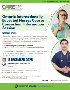CARE Centre’s Supports, Training, and Access to Regulated-employment Services program (STARS) provides IENs with one-on-one case management, language and communication training, exam preparation, professional development, mentoring and networking to be successful in the nursing profession. CARE Centre recognizes the value of nurses with diverse education and experience and is committed to promoting their full contribution to Canadian healthcare system.